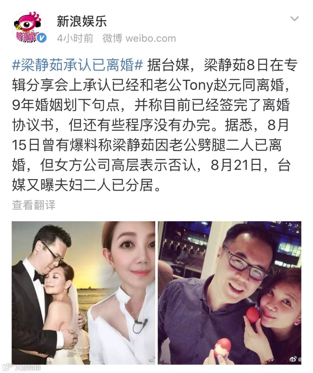 哎,不管是什么原因,终究还是离婚了,就像当年我们听的那首歌《可惜不是你》:可惜不是你,陪我到最后!这些年,梁静茹的歌治愈了无数人。遗憾的是,她终究没能治愈自己的婚姻。