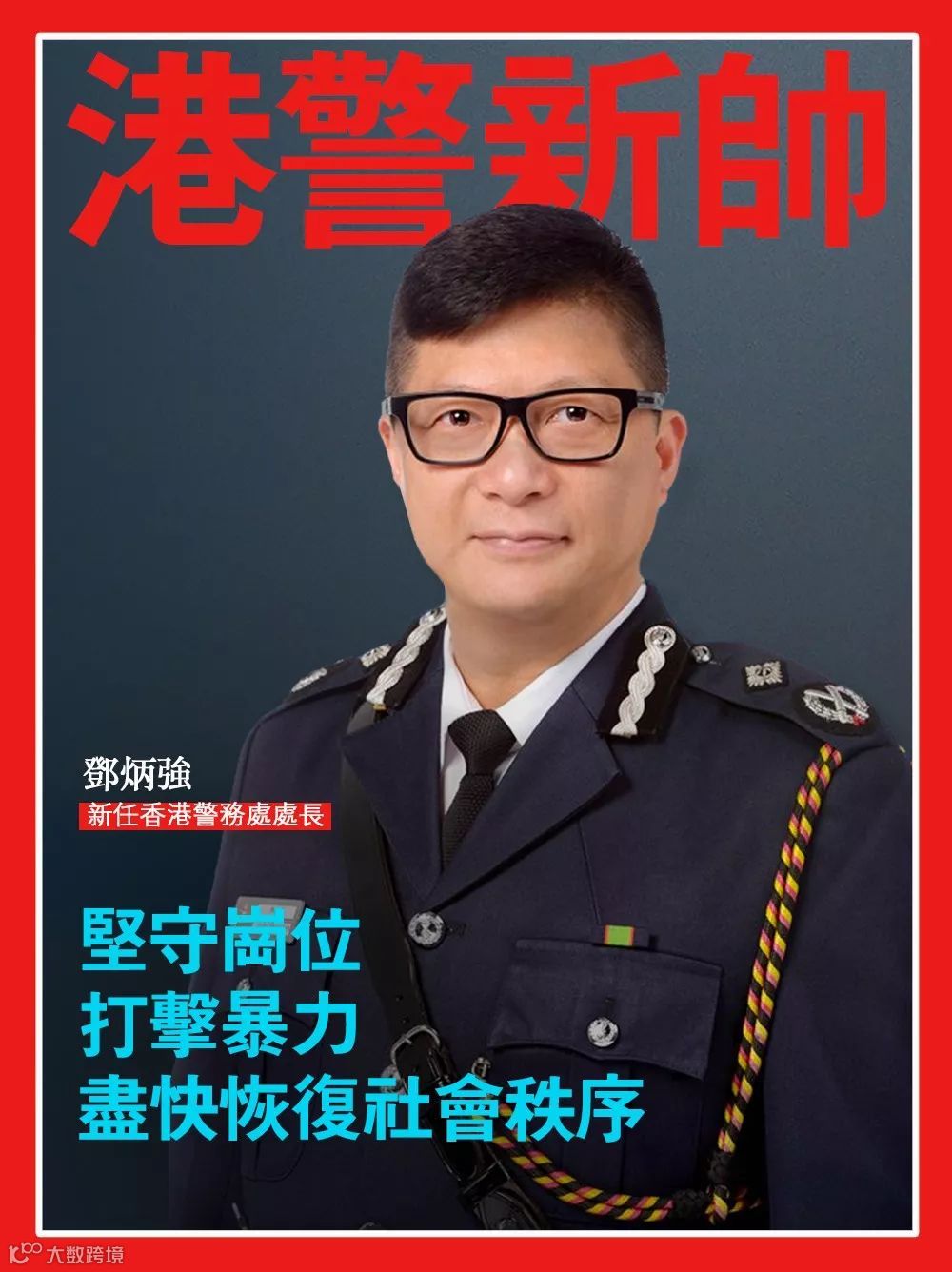 随着香港警队新“一哥” 邓炳强的上任,相信香港会很快恢复秩序!