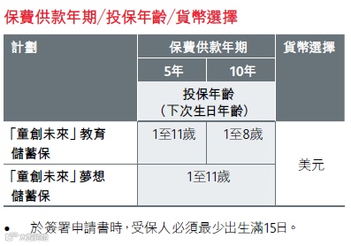 投保「童创未来」储蓄保系列的任何计划,无需提供任何健康资料。免提供健康资料限额为总年度化保费超过50万美元。