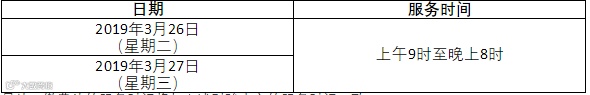 尖沙咀财骏中心将于2019年3月26日及27日延长服务时间: