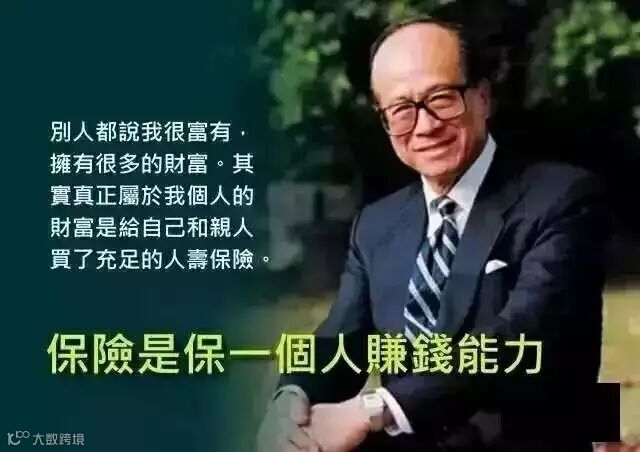 香港巨富李嘉诚说:“别人都说我很富有,拥有很多财富。其实真正属于我个人的财富是给自己和亲人买了足够的保险。”许多人不解,为什么像李嘉诚那样的有钱人也要买保险呢?难道他的财富还不足以抵御风险?