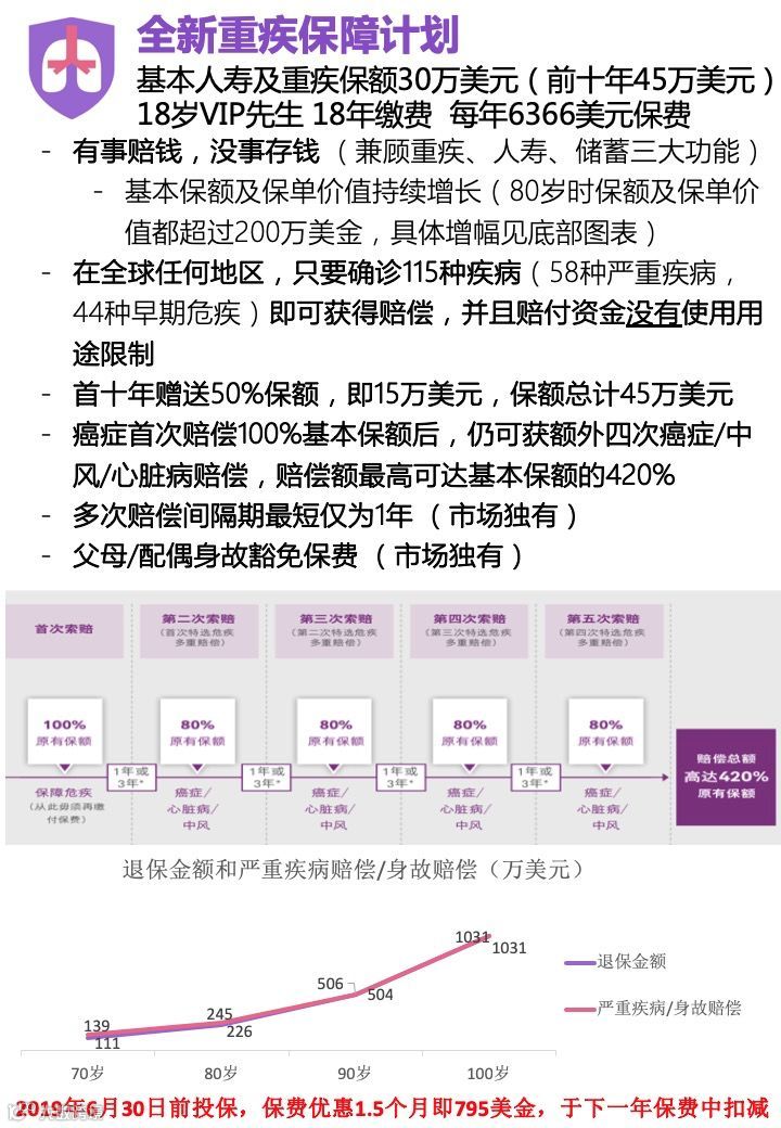 第二,税务是很重要的一项考虑指标。此保单属于持有人资产,如果父母是中国籍持有保单,只要不转移给子女持有是不需要交报美国的增值税,而重疾理赔也是不计赠与或遗产税的。