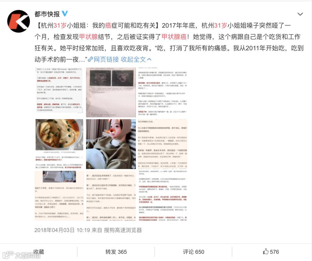 之前,一自媒体号连续发了几条“当31岁遇见癌症”的自述体文章,引起网友关注。文章作者是一位杭州女孩,31岁,结婚了,有个5岁女儿,做奢侈品管理工作。