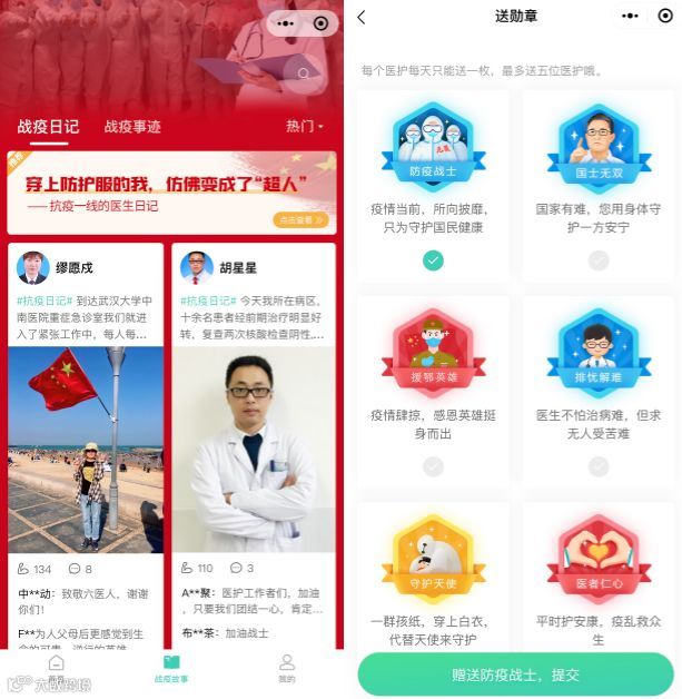 参与“致敬最美逆行者”活动,为战“疫”一线的医务工作者点赞、送勋章。