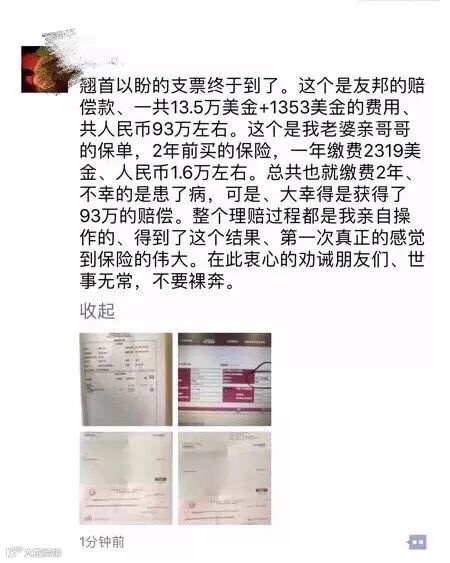 心理酸酸的感觉,35岁的男生,正当壮年,真的不知道该说什么!不幸中的万幸吧! 希望他拿到925000人民币的理赔款,好好治病,调整心态,能早日康复!