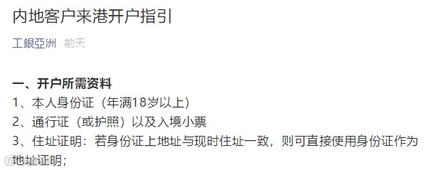 2、提交开户预约申请不等于成功开立账户,客户需亲临工银亚洲分行柜面完成正式开户流程。