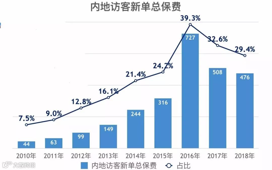 其中,内地访客带来的新造保单保费在2018年继续保持平稳,有关新造保单保费高达$476亿港元,占个人业务总新造保单保费的29.4%。