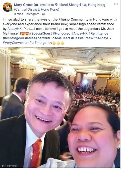在香港财政司司长陈茂波、长和集团联席董事总经理霍建宁、阿里巴巴集团董事局主席马云、蚂蚁金服董事长兼CEO井贤栋等共同见证下,在香港工作22年的菲律宾人格蕾丝(Grace)幸运地第一个尝鲜,整个汇款过程耗时仅3秒,而在以前需要短则10分钟、长则数日。