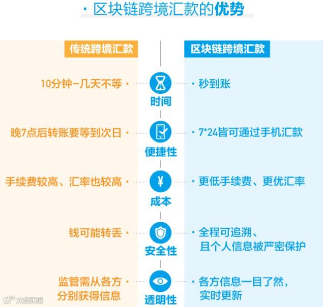 运用区块链技术,汇款人和收款人可以清楚地追踪到资金流向,包括汇款申请从何处提出、汇款人何时成功收到汇款等。
