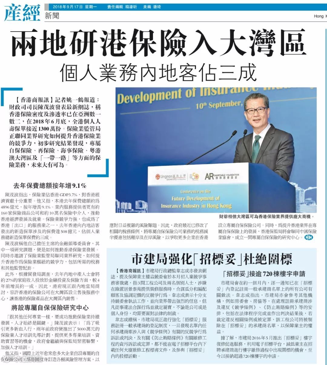 陈茂波指出,保险业占香港GDP3.7%,对香港经济贡献十分重要。