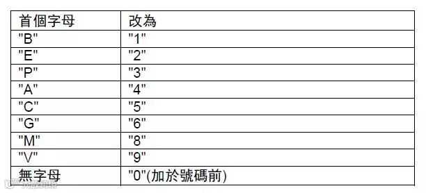- 输入 10 个位的「缴费灵」或「自动柜员机」帐户号码 (即保单号码或「AIA Vitality 健康程序」会员号码) 时,将首个字母改以下列数字输入: