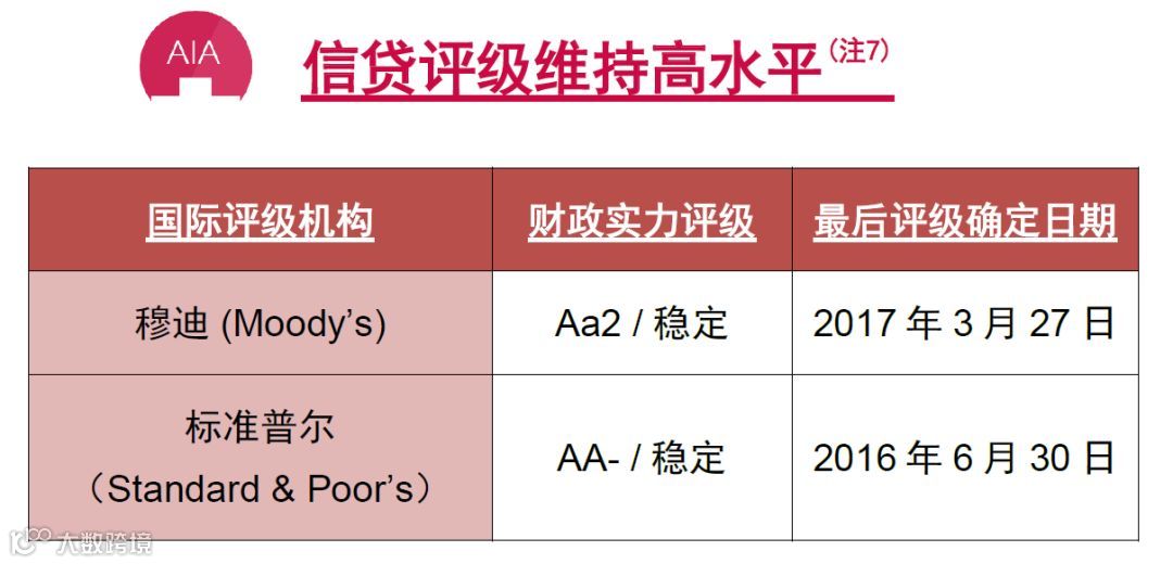 (7) 资料来源:友邦保险网站。 (https://www.aia.com/zh-hk/investor-relations/credit-investor.html)