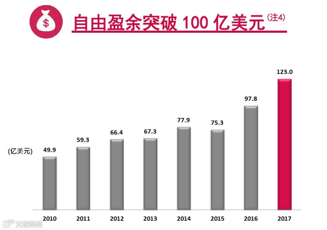 截至 2017 年 11 月 30 日,友邦保险(注5)的自由盈余突破百亿美元大关,飙升至 123 亿美元,与 2016 年末相比增长 25 亿美元(注6)。我们通过积极管理有效保单,实现了自由盈余的强劲增长。