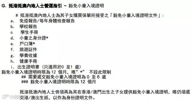 过往运营指引中详细列明以下文件,为可接受的【豁免小童入境证明文件】