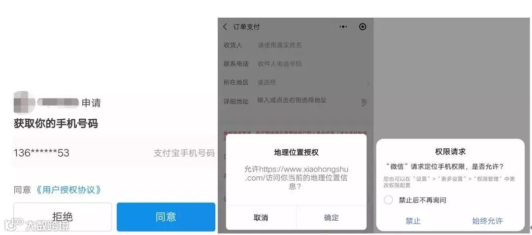 在使用App嵌入的小程序时,通常需要App授权个人信息登录,如:个人昵称、头像、性别、App账号等,并通过App开启支撑小程序运行的基本业务功能必要权限,如:寄快递可能需要电话权限方便自动获取电话号码、网约车需要位置权限快速定位用户位置等。同时有些小程序跟App一样,也提供了可选择的账号登录替代方案、授权内容及有效时长管理、权限管理等功能,可使用上述功能有效管理“小程序”收集使用个人信息。