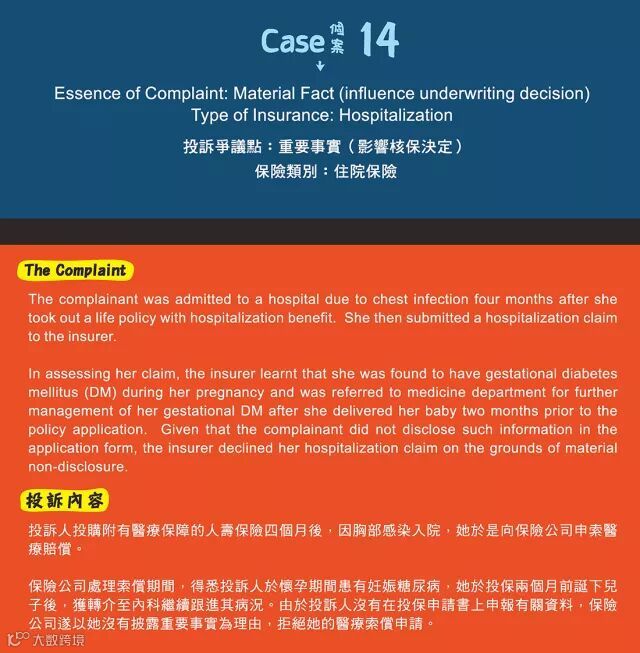 资料来源 (保险投诉局2013/14年报个案#14)