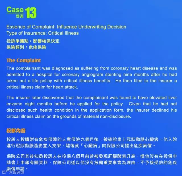 两个由保险投诉局网站提供因没有披露事实之危疾及医疗个案。