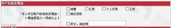 “开户目的及理由”,建议勾选“储蓄”或“汇款”;