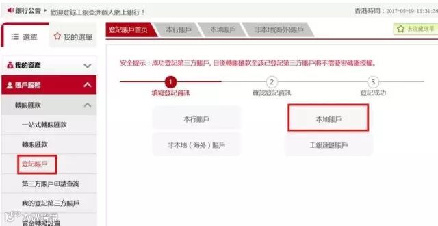 登记账户的目的是提高单次转账的上限至50万港币,因为香港多数的普通银行账户日转账的限额为10万港币,好在银行往往提供<登记账户>功能来突破单日转账限额至50万港币,不过一般要次日生效;如保费不超过10万港币则无需登记账户,直接转账即可;