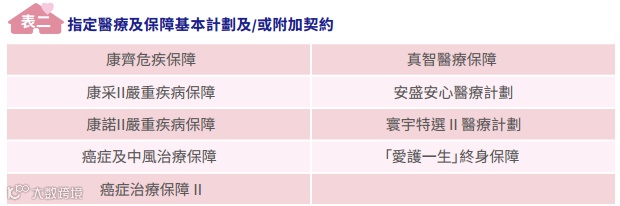指定危疾保险计划及保费回赠优惠: