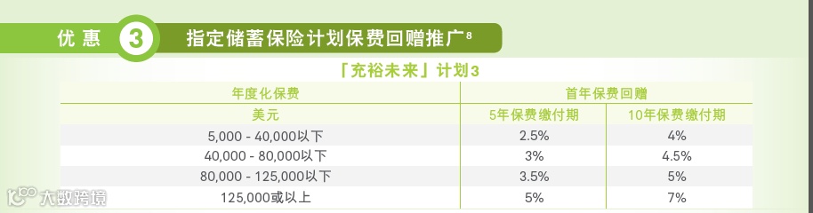 B. 指定储蓄保险计划保费回赠推广如下: