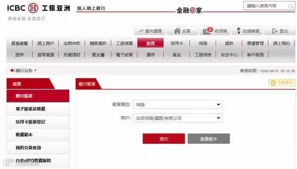 由于使用工银亚洲「综合账户」缴纳保费属于“缴付账单”服务,并不属于转账,因此无需缴纳任何手续费。