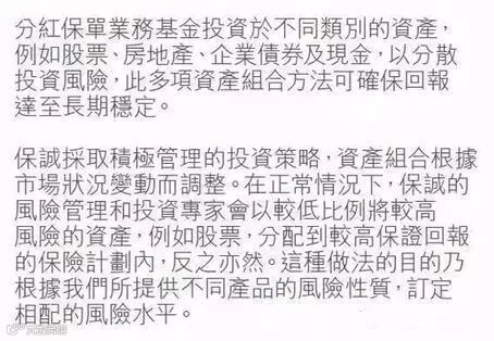 我们用一句话来说,就是:香港保险承袭/借鉴欧美的相关措施和机制,从根本上来说是在维护客户对分红保单的合理预期,保险公司制定演示红利的时候,不是预先设为“低中高”,而是审慎保守地制定,有多大能力吃多大碗饭,所以分红回报是可以较好地达到的。对于香港几家较大的保险公司,更是有“非保证中的保证”美誉