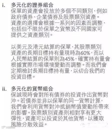 投资回报:包括本产品相关资产所赚取的利息及市场价格变动。投资回报会因应产品的资产分配、利息回报(利息收入及息率前景)以及各类市场风险包括信贷息差及违约风险、股票价格、物业价格及保单货币与相关资产货币币值差额之波动而变化。