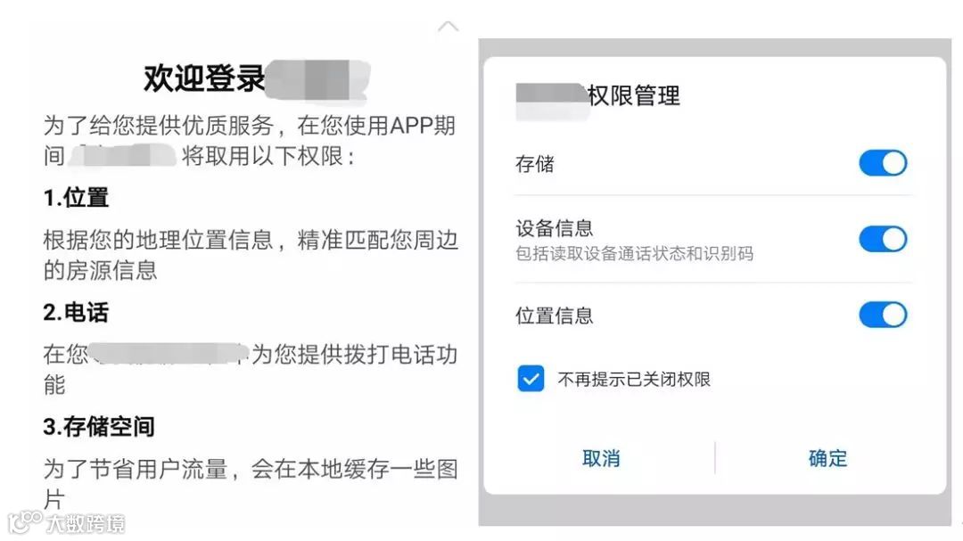 2.留心查看App申请打开权限时以弹窗等方式提示使用该权限的目的是否合理;