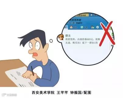 在研考备考期间,一些不良商家往往利用考生复习紧张,无暇搜集备考资料,假以“上岸”学长学姐的身份,宣称有考研“内部资料”,实际干的却是骗钱的营生。上当考生不但钱物两失,还耽误了考研复习进度。