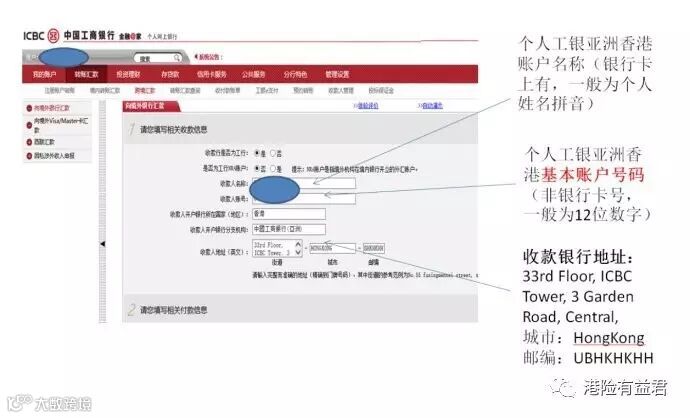 收款人名称:个人工银亚洲香港账户名称(银行卡上有,是个人姓名拼音);