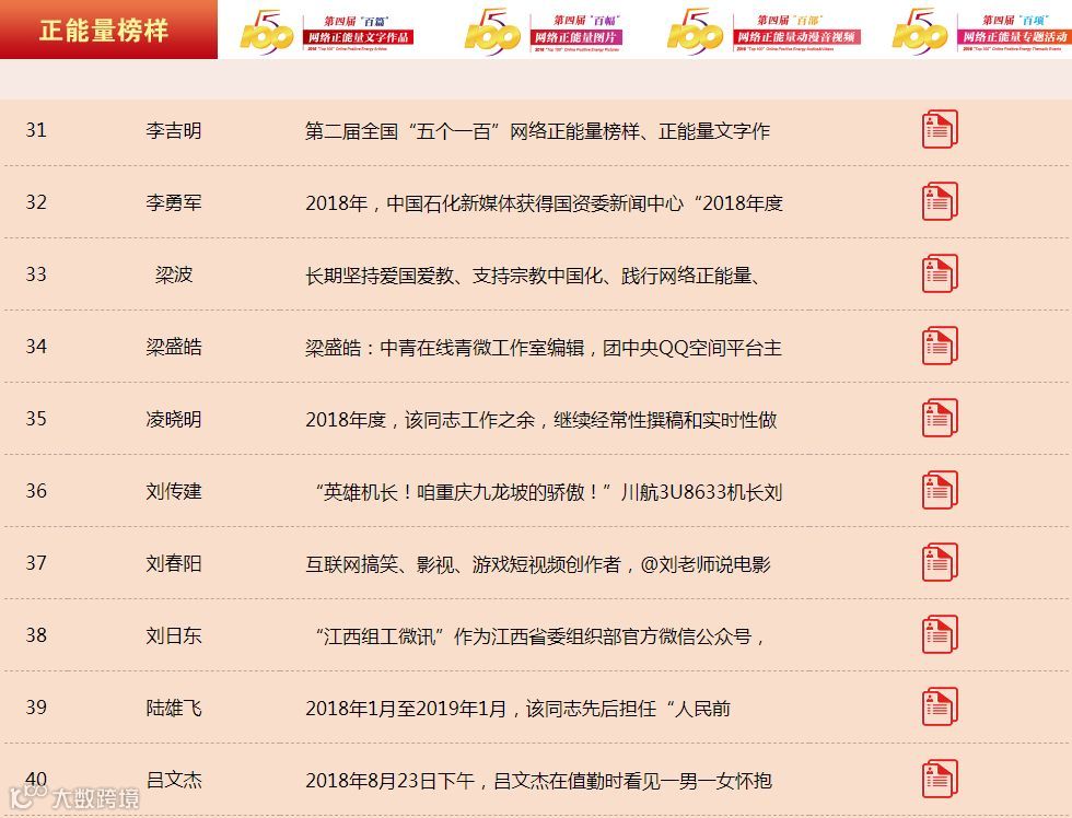 “百名网络正能量榜样”展示(部分)