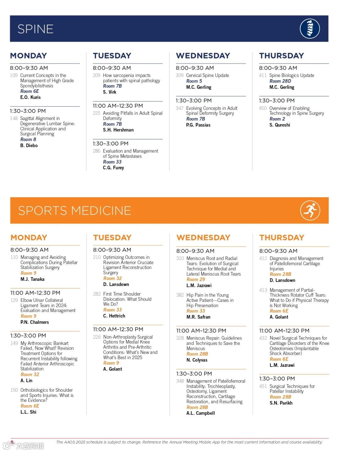 AAOS 2025 | 会议日程一览