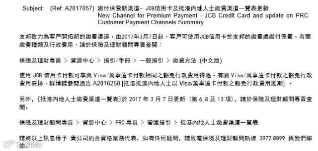 导读:接到AIA通知,由3月7日起,客户可使用JCB信用卡于友邦缴费处缴付保费。”使用JCB信用卡付款可享与VIS