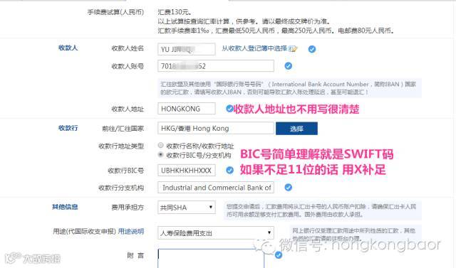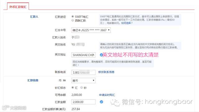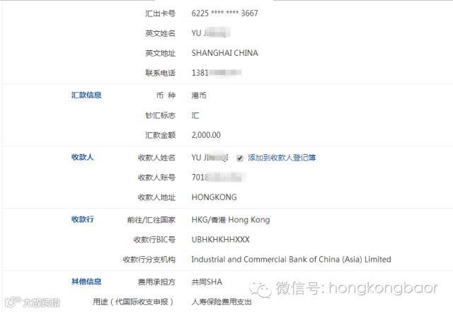 3)、在汇保费的时候,要多汇一些,香港账户收款时也是需要一定费用的,保证保费交完账户上还要留一点。
