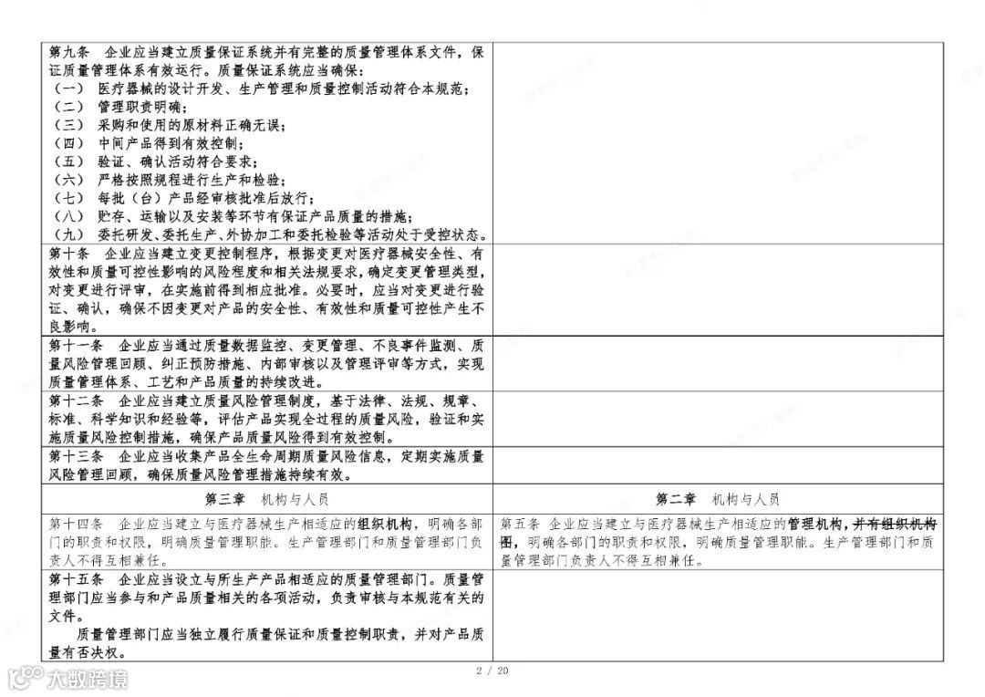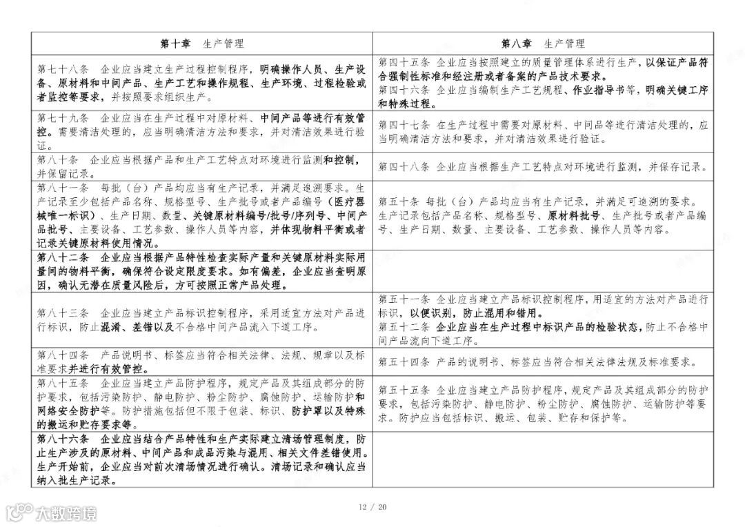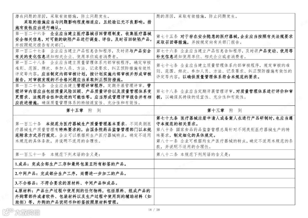 国家药监局于2025年11月4日在官网发布《医疗器械生产质量管理规范》。为方便大家了解新修订《医疗器械生产质量管理规范》的主要变化,核查中心组织对《医疗器械生产质量管理规范》修改前后进行了对比。现全文刊登如下,供大家学习参考。