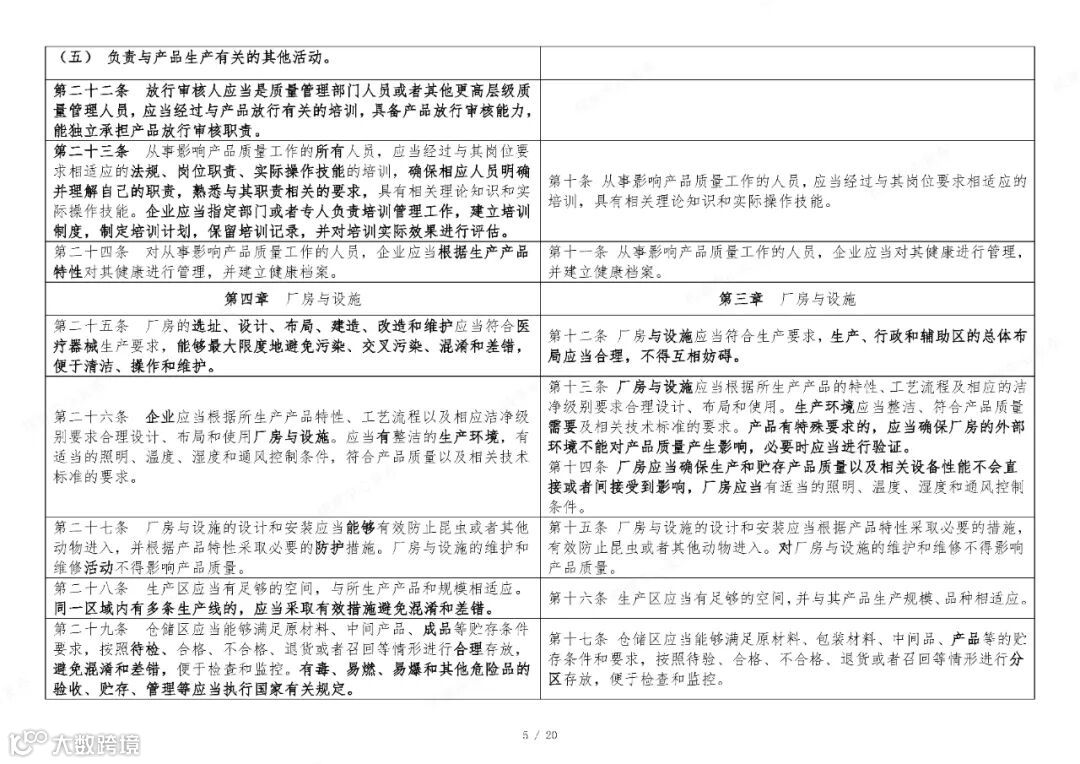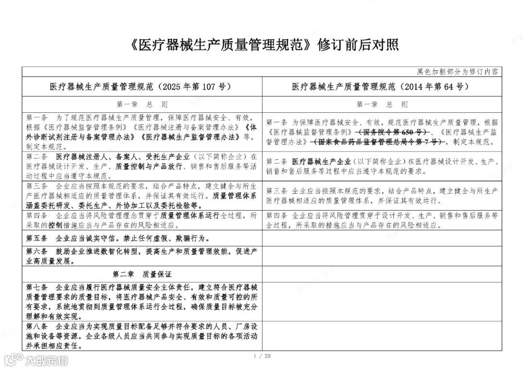 众信博达国家药监局于2025年11月4日在官网发布《医疗器械生产质量管理规范》。为方便大家了解新修订《医疗器械生产质量管理规范》的主要变化,核查中心组织对《医疗器械生产质量管理规范》修改前后进行了对比。现全文刊登如下,供大家学习参考。