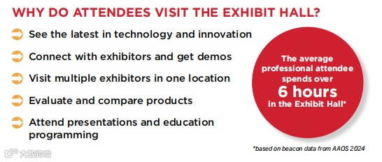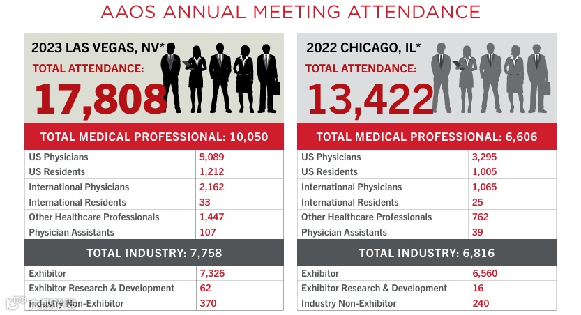 AAOS年会是目前国际骨科领域影响力最大、学术水平最高的学术会议,每年都会吸引来自世界各地的12000余名骨科医师和专业人士参会,以及10000余名展览观众。