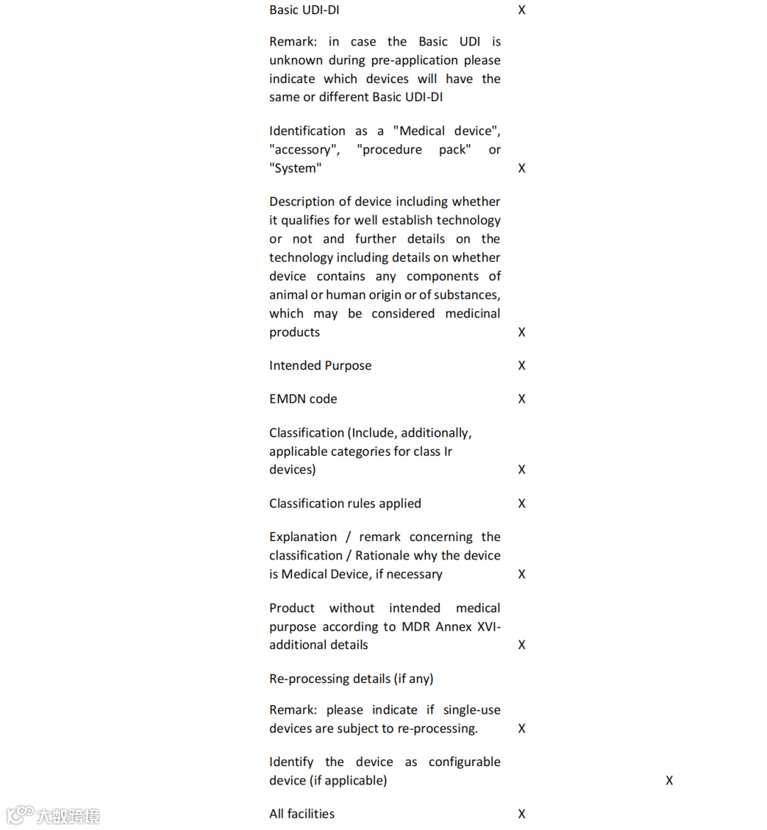 根据MDR附录VII §4.2(d),NB需在报价前对预申请信息进行审查,包括初步核实产品是否属于本法规的范围及其分类。根据这一要求,NB将要求制造商或其欧盟授权代表(EU Rep)提交本文件附录A中规定的详细信息,以便 NB 提供准确的服务报价。