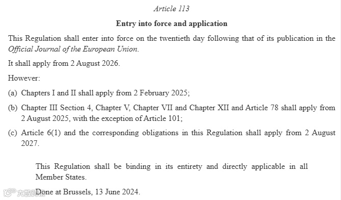《人工智能法规》全面生效