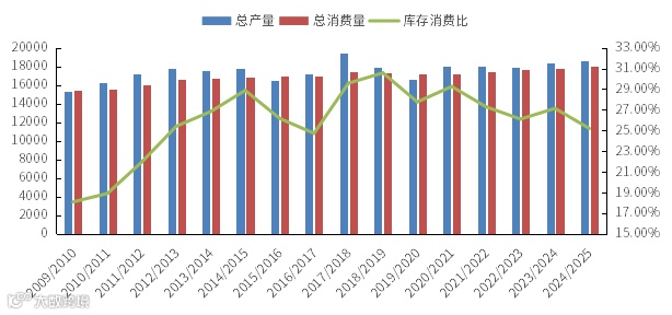 国际糖市方面,全球糖市在从本榨季向下一榨季过渡的过程中,供需形势将逐渐趋于宽松。得益于印度、泰国甘蔗生长形势向好,北半球食糖增产预期较高。巴西甘蔗高制糖比为食糖产量提供一定支撑,但甘蔗单产尚未修复,2025/26榨季食糖能否实现增产仍存在变数。中长期来看,国际糖价仍将有所承压。近期关注ICE原糖在16美分/磅一线的支撑。