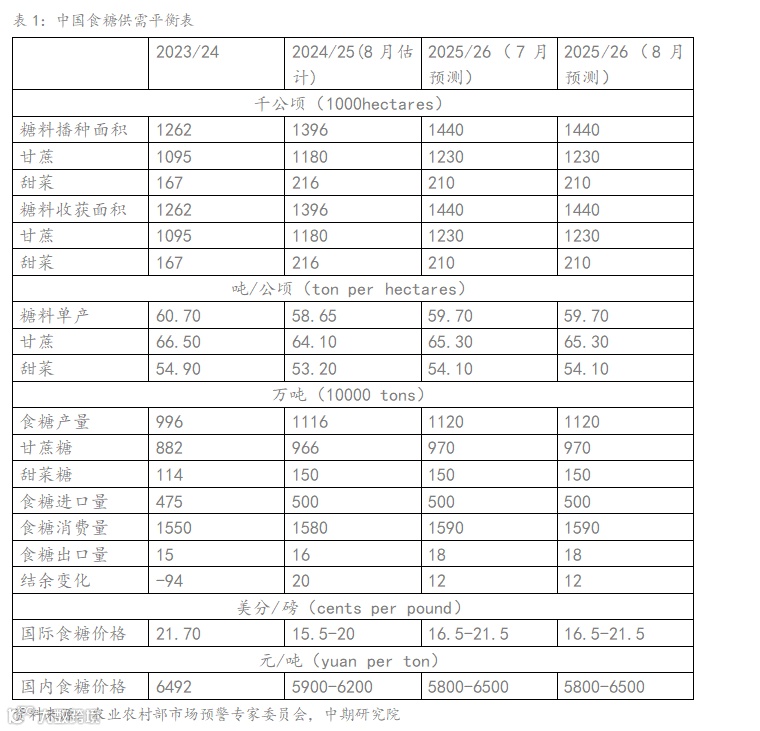中国农业农村部预计2025/26年度中国糖料种植面积1440千公顷,比上年度增加44千公顷。得益于甘蔗种植面积的扩大,2025/2026榨季将有望继续增产。预计2025/2026榨季我国食糖产量为1120万吨,比上个榨季增加4万吨,增幅为0.36%。预计2025/2026榨季甘蔗糖产量为970万吨,较上榨季增加4万吨。预计2025/2026榨季甜菜糖产量为150万吨,较上榨季持平。