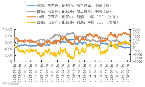 图12:巴西糖加工成本及进口利润情况(元/吨)