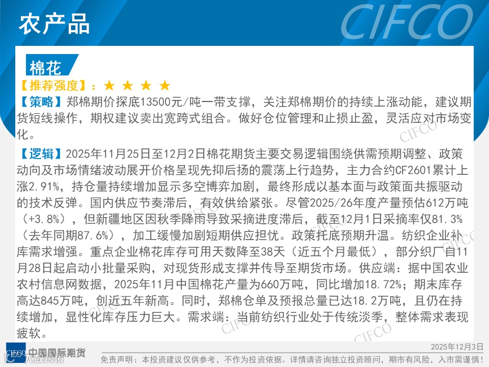 中期早知道 |沥青、氧化铝弱势下跌  棉花、螺纹钢、苹果、热卷震荡上涨 中国国际期货福建分公司