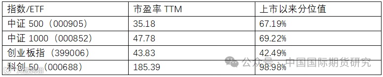 表1 主要指数的市盈率及历史分位值