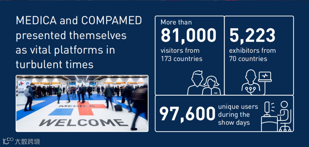 从目前的参展情况来看,无论是预定面积还是参展企业数量都超过了上一年的水平。MEDICA 2023预计拥有来自70个国家的6213多家参展商和来自世界各地数以万计的参观者。
