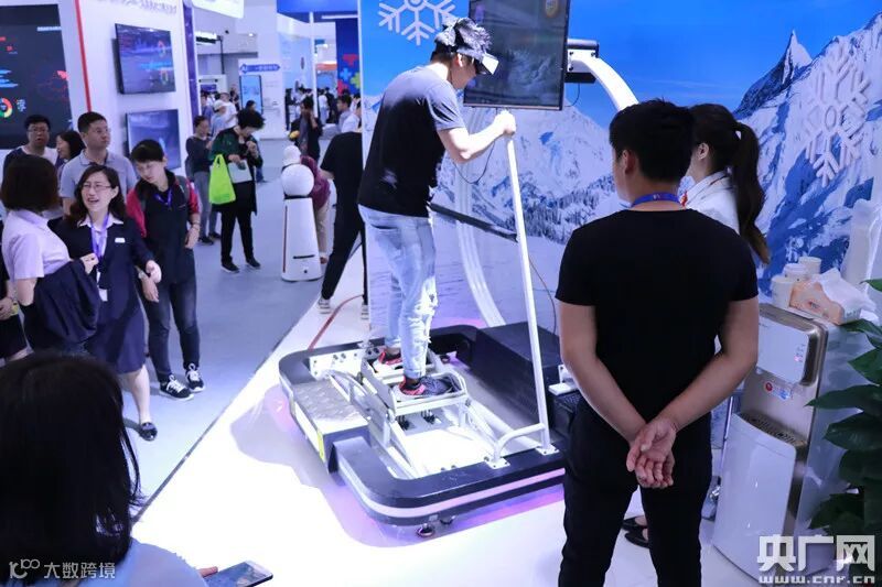 市民体验VR滑雪,在第三届世界智能大会展区内市民可以佩戴眼镜亲身感受仿佛在赛道滑雪,这种体感游戏已经逐步普及。央广网记者 刘阳 摄
