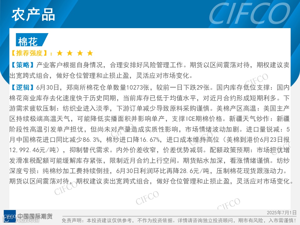 中期早知道 | 沪锌、棉花震荡上涨 玉米淀粉弱势下跌