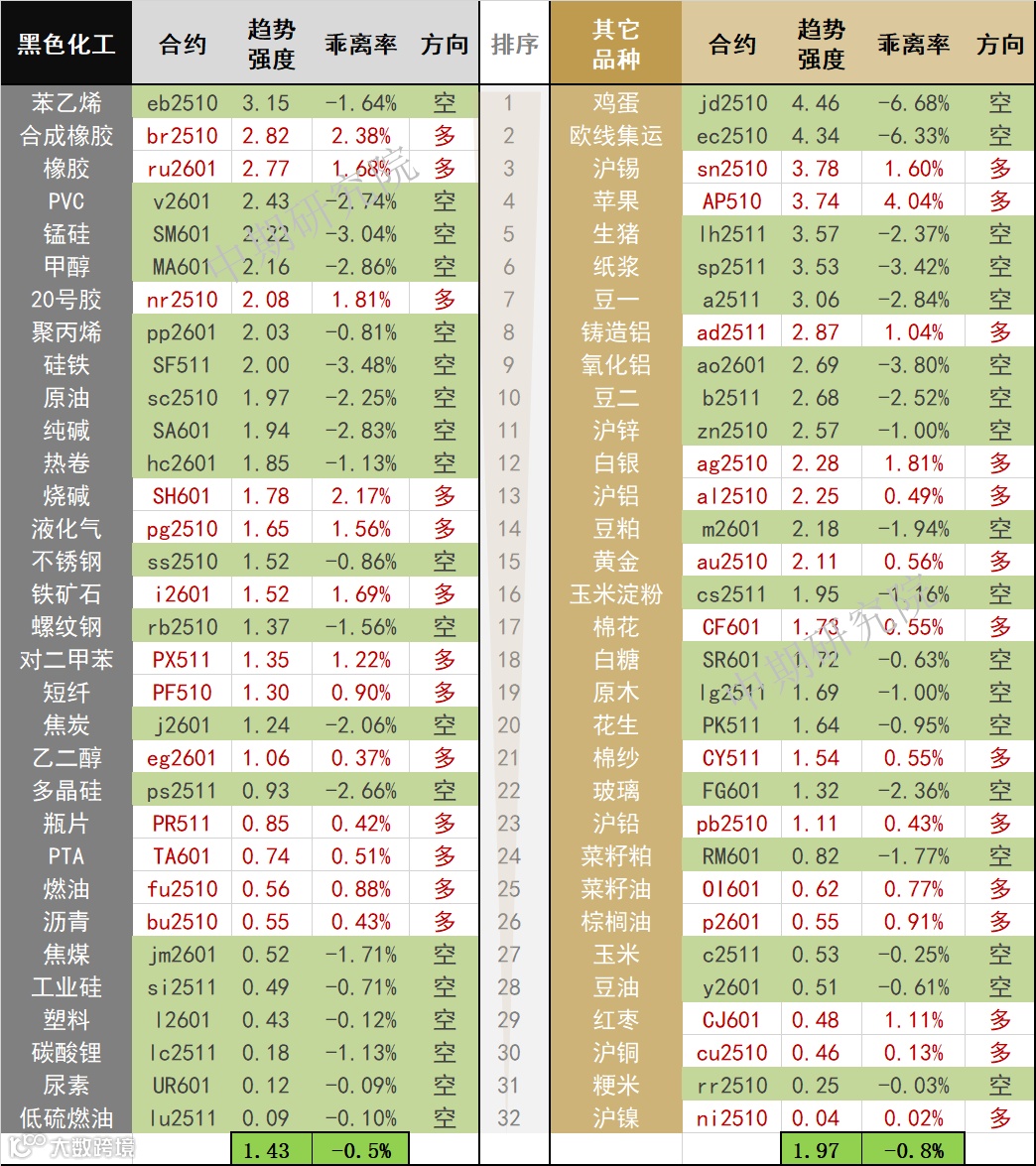 中期商品趋势榜 | 鸡蛋、欧线集运、生猪、纸浆、苯乙烯空头强势 沪锡、苹果多头偏强(0828)