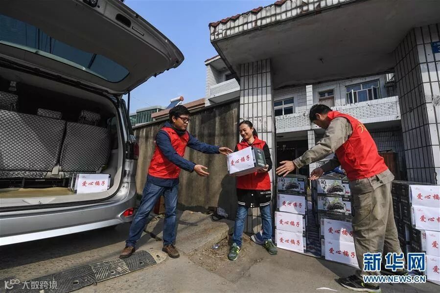 浙江省余姚市的爱心志愿者们通过网络、微信朋友圈等方式帮助当地乡村的困难群众义卖橘子。新华社发